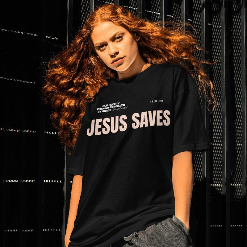"JESUS SAVES" Streetwear T-Shirt | Comfort Colors Heavyweight Christian Tee | Trendy Faith Apparel | Unisex